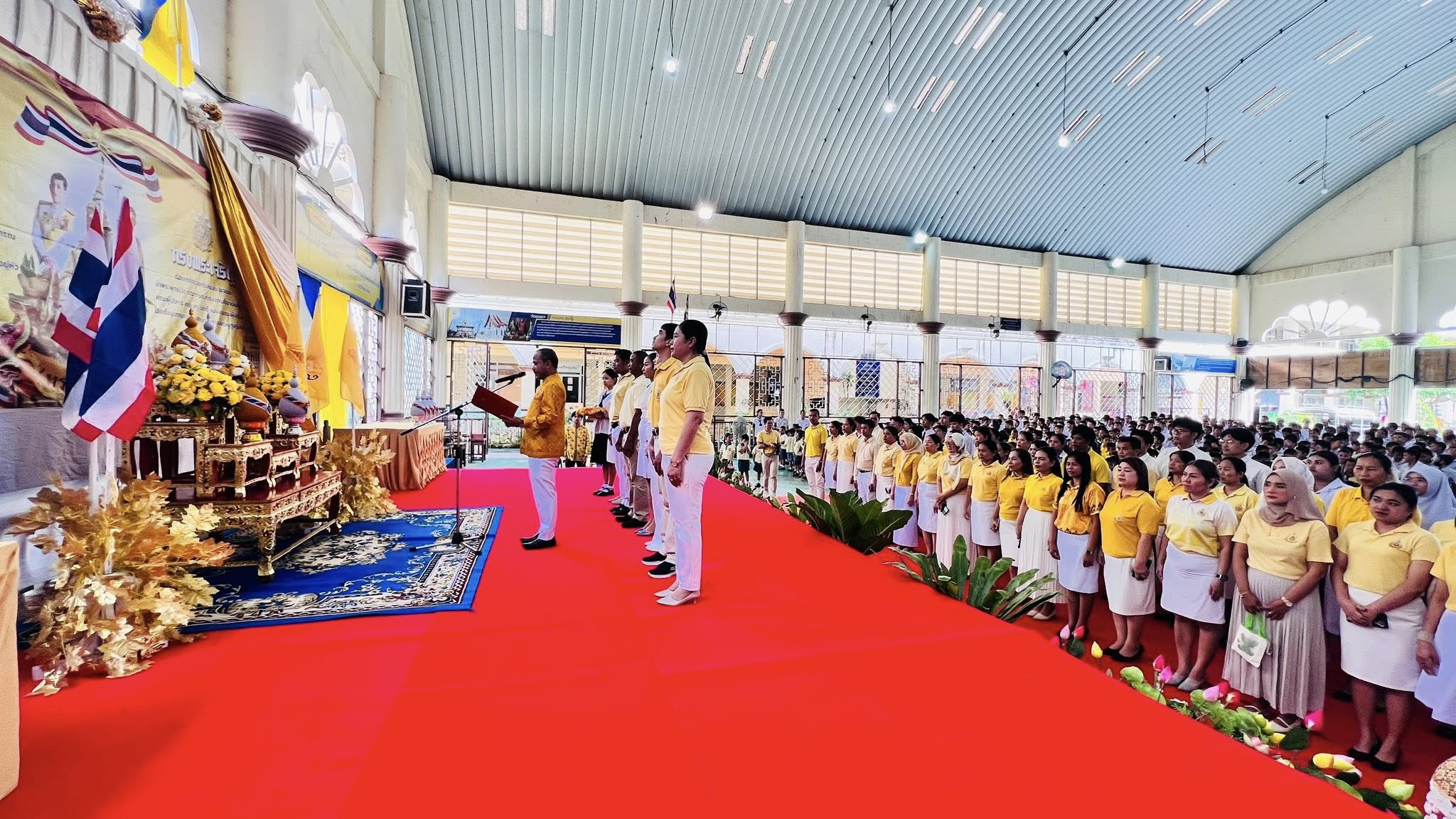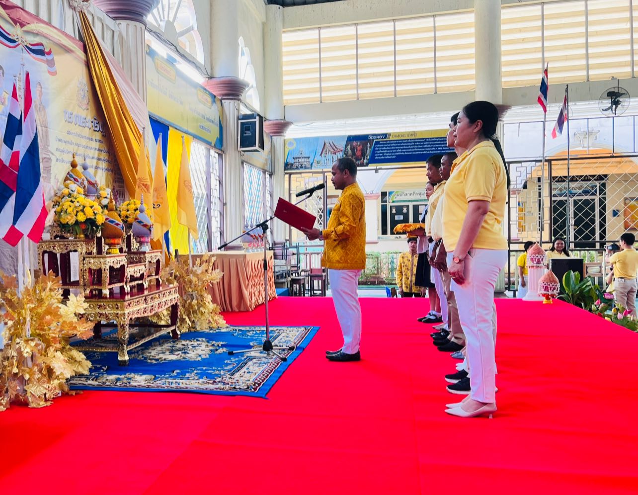 วันที่ 25 กรกฎาคม 2568 ณ โรงเรียนเทศบาลบ้านสามกอง(ขุนวิเศษนุกูลกิจอุทิศ) นายปราโมทย์ แตงแก้ว ผู้อำนวยการสถานศึกษา จัดพิธีถวายเครื่องราชสักการะและวางพานพุ่ม เนื่องในโอกาสวันเฉลิมพระชนมพรรษา พระบาทสมเด็จพระปรเมนทรรามาธิบดีศรีสินทรมหาวชิราลงกรณ พระวชิรเกล้าเจ้าอยู่หัว ประจำปี 2568 คณะผู้บริหาร คณะครู คณะกรรมการชมรมผู้ปกครอง โรงเรียนเทศบาลบ้านสามกอง(ขุนวิเศษนุกูลกิจอุทิศ) และเจ้าหน้าที่ผู้เกี่ยวข้อง เข้าร่วมฯ