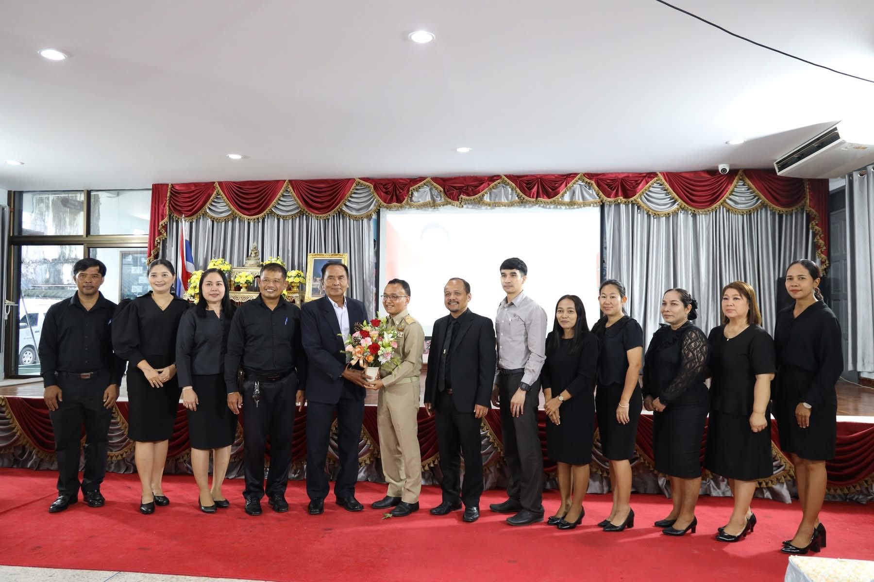 วันที่ 4 พฤศจิกายน 2568 นายปราโมทย์ แตงแก้ว ผู้อำนวยการสถานศึกษา พร้อมด้วยนายเอกพงษ์ บัวจันทร์ รองผู้อำนวยการสถานศึกษา คณะครูและชมรมผู้ปกครอง ร่วมแสดงความยินดีแก่ นายเสน่ห์ สุขขนาน เนื่องในโอกาสย้ายมาดำรงตำแหน่งผู้อำนวยการสถานศึกษาโรงเรียนเทศบาลเมืองภูเก็ต ณ ห้องประชุมมิ่งเมือง โรงเรียนเทศบาลเมืองภูเก็ต